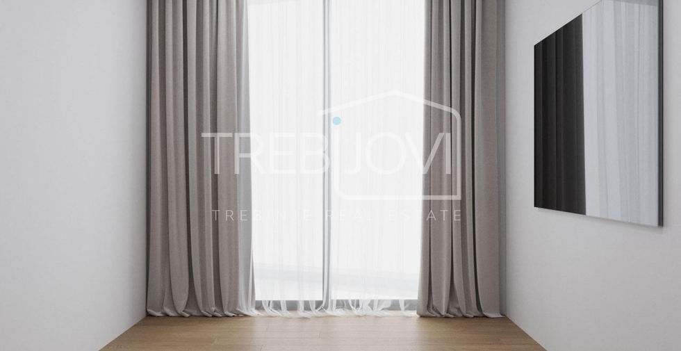 Prostrani dnevni boravak odise elegancijom, dok visoki prozori propustaju obilje prirodnog sujetla, isticuci predivne poglede na obalu rijeke Trebisnjice. Svaka soba, paljivo osmisjena i opremijena, pruza oazu mira i udobnosti. Sa tri prostrana balkona, ovaj stan nudi izvanredne moguénosti za uzivanje u predivnim pejzazima i osjezavajucem vazduhu. Kupatilo je uredeno sa najfinijim materijalima i opremom, pruzajuéi osjecaj raskosi i opustanja. Njegova povrsina od 80.84 m2 docarava prostranost i luksuz, dok svaki detalj enterijera odrazava paljivo planiranu estetiku i funkcionalnost.
